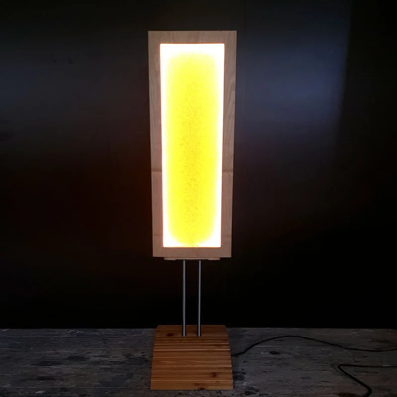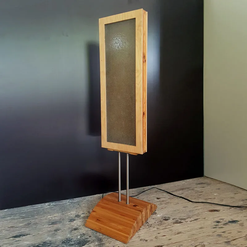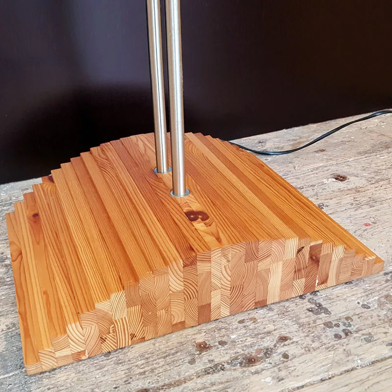 Einzigartig ist der aus mehreren Kiefernholz-Elementen verleimte Sockel in gerundeter Form.