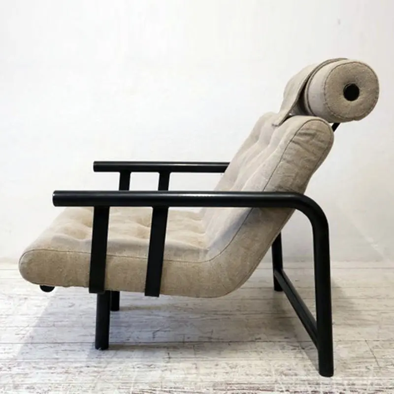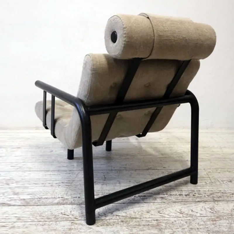 Das Kopfpolster wird von einem zur Waschmaschinen-Reinigung abnehmbaren breiten Riemen umschlossen.Zum leichten öffnen und schließen ist ein Klettverschluss angebracht. Dieser Sessel kann individuell nach Kundenwünschen gefertigt werden. Farbe und Material der Polster können variieren. Ebenso ist beispielsweise eine Pulverbeschichtung des Gestelles in verschiedenen Farben möglich, so daß der Sessel auch im Außenbereich eingesetzt werden kann.
