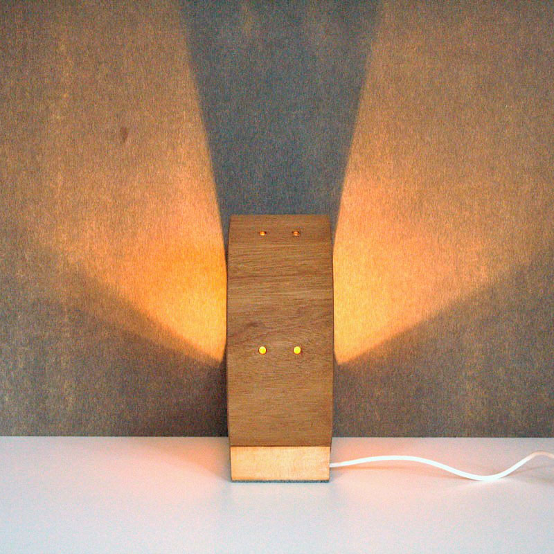 Abgesehen von seiner Funktion als Ausstellungsfläche für kleinere Objekte, beinhaltet er obendrein eine Tischlampe.