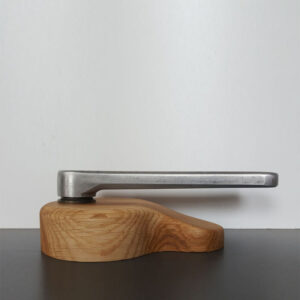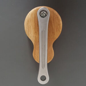 Diese ist mit einem handgefertigten Block aus Eichenholz verbunden, dessen Oberfläche geölt ist.