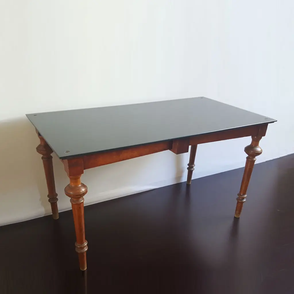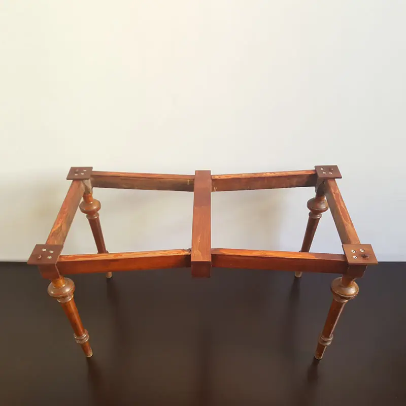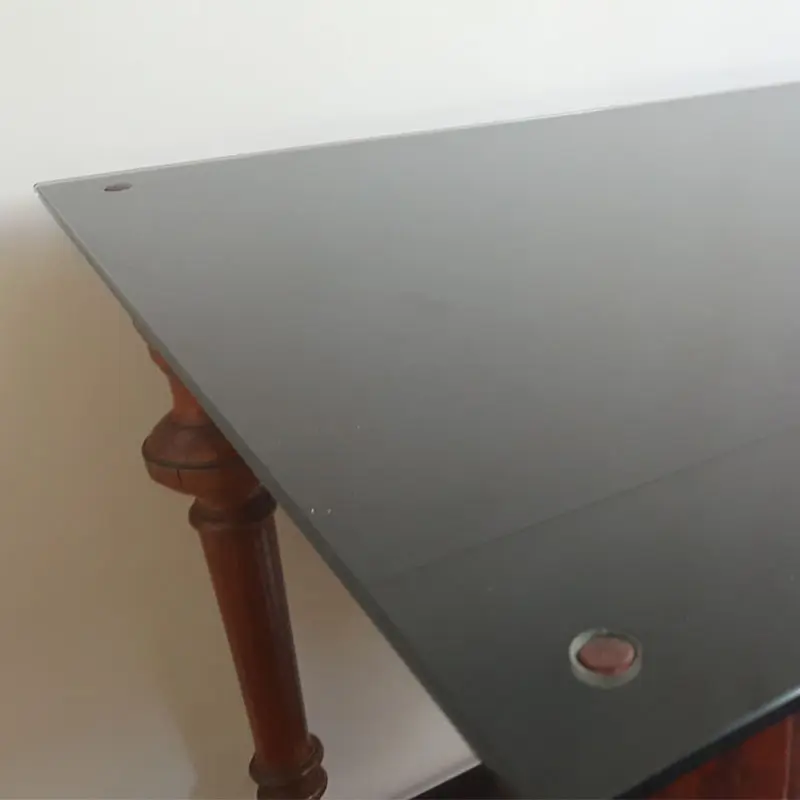 Das Gestell wurde aus Teilen zweier Stühle gefertigt und an eine vorhandene schwarz satinierte Glasplatte angepasst.